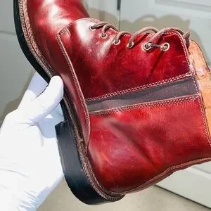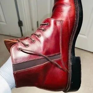 Carlo Morandi Leather Ankle Buckled Boots. These boots are the ones to be seen in. The boots are Made In Italy and has genuine premium leather and to make it top notch, European styling was added with a classic buckle. What a classy boot. Color: Burgundy, Size: 42. The shoe has a few minor scuff marks that is hardly noticeable. The size can vary depending the thickness of the sock. It’s safe to say true shoe size would be 9 to 9 1/2. The shoe is in great condition. This shoe with great care will last for years. L5