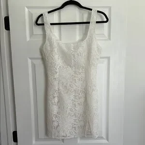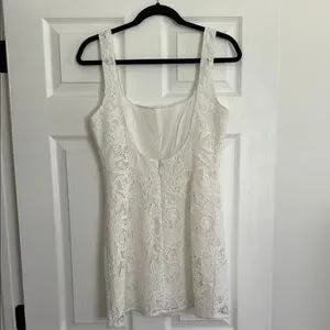 This elegant white lace dress is perfect for any special occasion. Its intricate lace design adds a touch of sophistication and style.