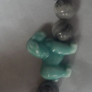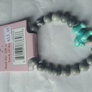Stylish bracelet by Simply Southern with gray beads and an aqua lion charm. Adds fun to any outfit.
