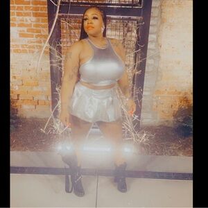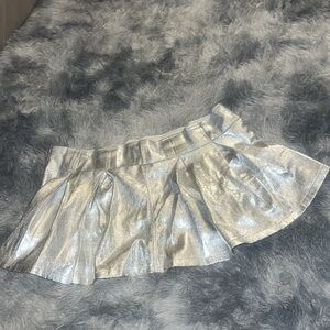 Shimmering silver metallic mini skirt with pleats. Perfect for a night out.