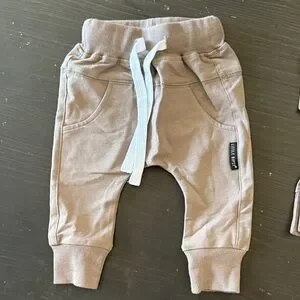 Cozy tan hoodie and jogger set. Ideal for playtime and casual outings. In New condition worn once