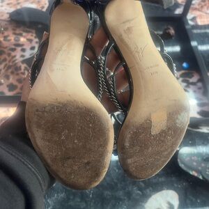 Stylish black Giuseppe heels with striking silver chain accents. Perfect for a bold fashion statement. I do not have the original box anymore, vintage style