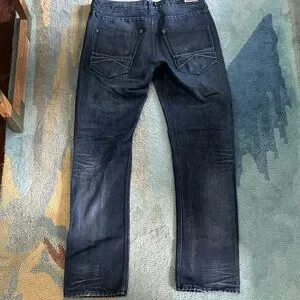 Stylish slim straight jeans by Express. Dark blue hue. Perfect for versatile wear. 30X32