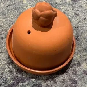 Vintage Rustic Terracotta Cheese Dome with Lid w 1 chip, as pictured