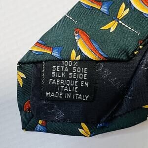 Tiffany & Co Tie Mens Green Silk Fish Dragonfly Print Made in Italy Designer Necktie