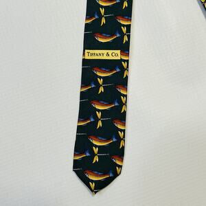Tiffany & Co Necktie Mens Silk Fish Dragonfly Print Made in Italy Designer Tie