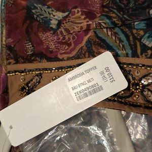 NWT SOFT SURROUNDINGS Floral Print with Beaded Trim Topper