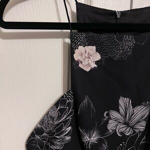 KEEPSAKE Black FLORAL Poly Crepe HIGH-NECK Sleeveless SEXY BACK Dressy Romper S