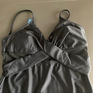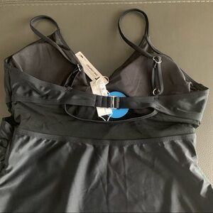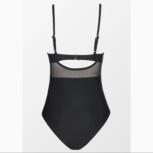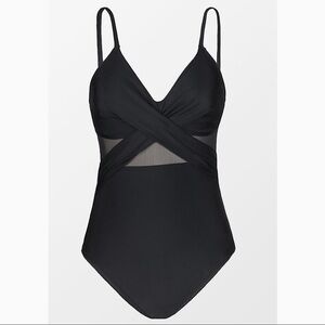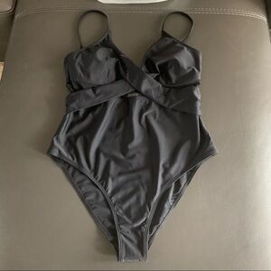 NEW Black Solid Mesh Wrap Front Cutout One Piece Swimsuit Size Large