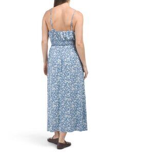 Floral print overlay, pleated detail, front tie detail, front slit, smocked waist detail, fabric provides stretch
