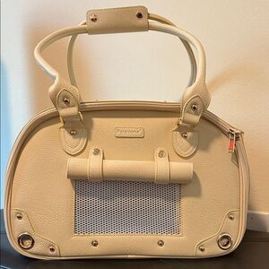 Elegant and versatile, the cream bag is perfect for any occasion. Its stylish design and neutral color make it a must-have accessory.for you pet friend carry on
