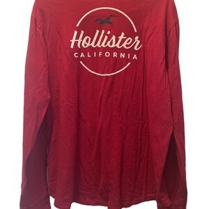 Stylish red long sleeve tee. Features Hollister logo on front. Ideal for everyday wear.