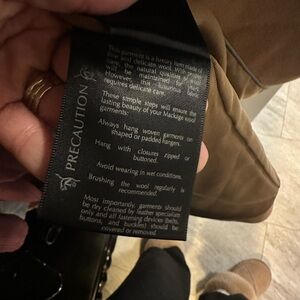 In Pre Owned Amazing Condition-Embrace the classic warmth and elegance with the Mackage wool coat, tailored specifically for women who appreciate a perfect blend of style and comfort. The coat features a rich brown hue that complements a myriad of outfits, making it a versatile addition to your wardrobe. Crafted from high-quality wool, this pea coat ensures durability and heat retention. It boasts a regular fit in a 2XS size, a seamless button closure that adds a touch of sophistication, and a design that's easy to care for, requiring only dry cleaning to maintain its sleek appearance.
