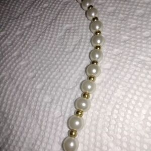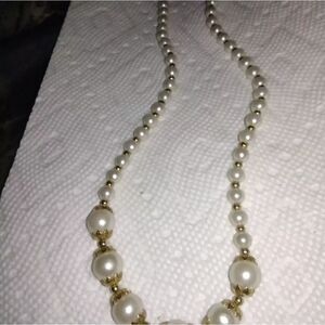 Faux Pearl and Gold Tone Bead Spacers Necklace 18"