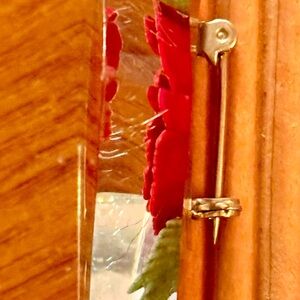 Red rose brooch and earrings. Brooch has refraction qualities on edges.