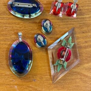 1950s Mid Century Reverse Carved Lucite Flower Jewelry