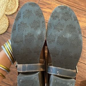 John Fluevog brown leather boots. Only worn a handful of times! In perfect condition. Size 9.5! The straps on the sides are removable. Worn twice. Some scuffing. Rustic look.