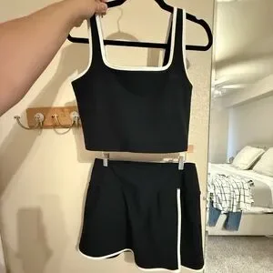 Sleek black crop top with white trim and athletic skort. Features YPB SculptLUX design. Only worn once!