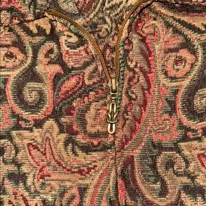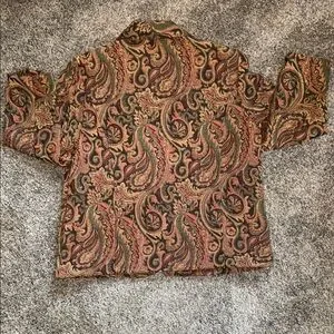 Stylish jacket with intricate paisley pattern. Ideal for layering. Size medium petite