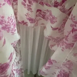 Chic Aqua floral dress. Pink and white hues. Crafted from cotton and rayon. Bloomingdale’s