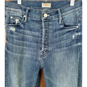 Mother Stunner Ankle Fray Buttonfly in Graffiti Girl Jeans 27