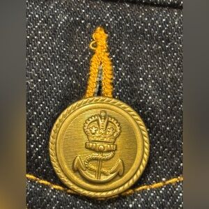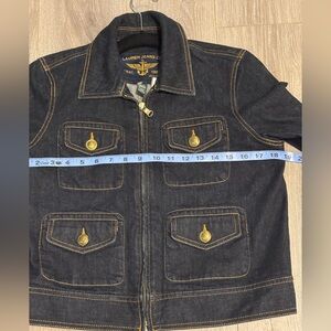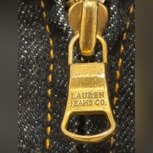 Dark blue denim with a sturdy gold zipper and RL buttons. Classic Ralph Lauren style.