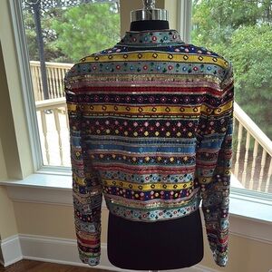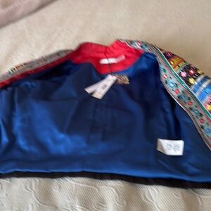 Vibrant embroidered jacket. Open front design. Multicolor pattern with intricate details. New with tags