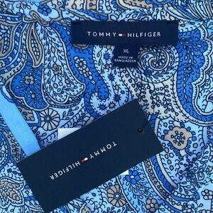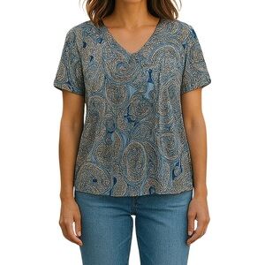 Tommy Hilfiger V-Neck Paisley Print Blue and Brown Women's Top