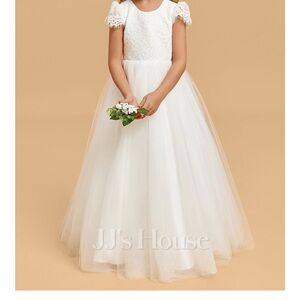 A-line Scoop Floor-Length Lace Tulle Flower Girl Dress 5T