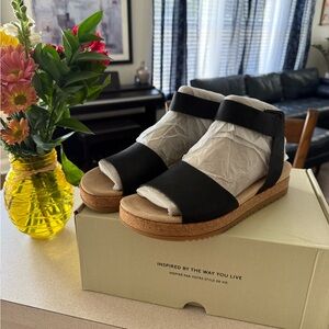 Elegant black sandals with a comfortable cork sole. Perfect for casual outings.