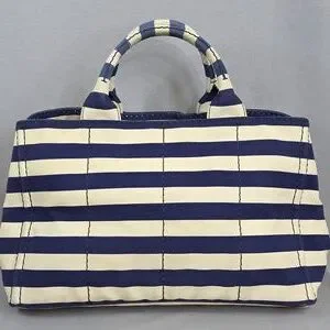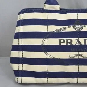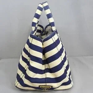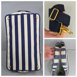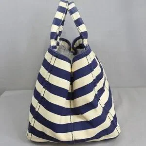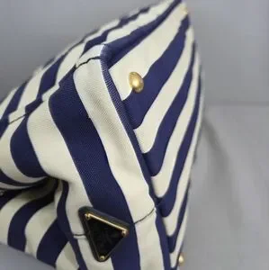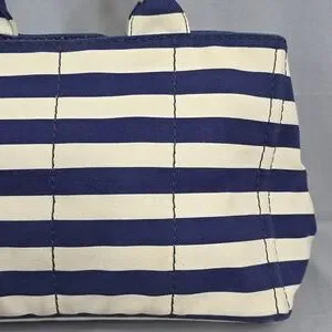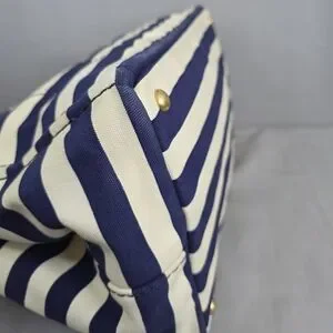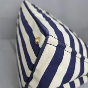 ☆Exterior : Navy Blue / White stripes canvas has slightly stains at the corners and handles has some fading as pre-used,,,no rips, no tears