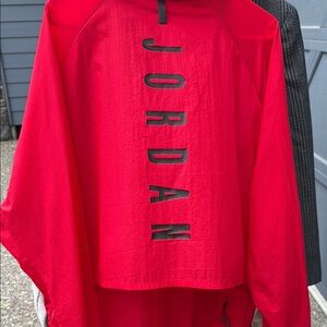 Stylish red windbreaker jacket with iconic Jordan logo. Perfect for casual wear. Barely worn at an excellent like new condition.!