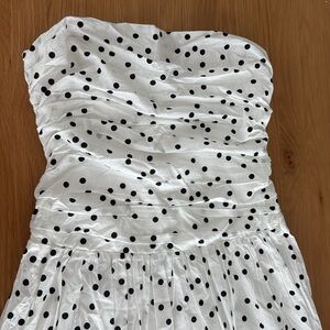 Vici XL strapless maxi dress, white with black polka dots. Rubber in top to keep up, stretchy back material, ruched material on top. Never worn