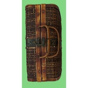 Wooden Vintage Unique Handbag With Metal Latch Purse. Approximately 6 inches tall and deep, 9 inches wide,