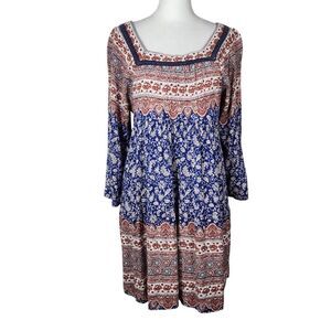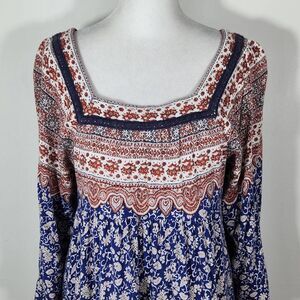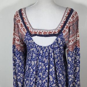Blu Pepper Blue and Red Floral Boho Mini Dress Size Medium Cute Boho Dress