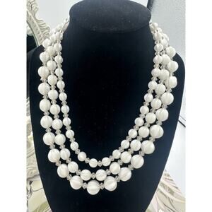 Vintage Retro Multi Strand necklace White Faceted Beads Jewelry Beauty Germany