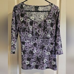 Ann Taylor Large Purple Floral Blouse