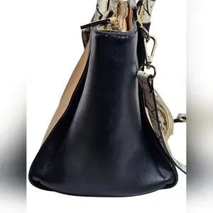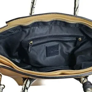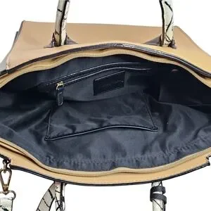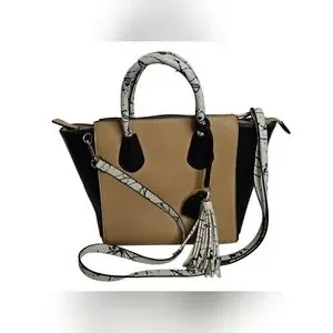 Neiman Marcus Faux Leather Tote Shoulder Bag Double Handle Shoulder Strap Tassel