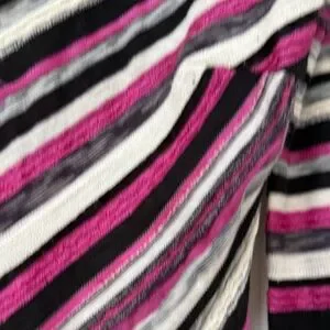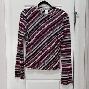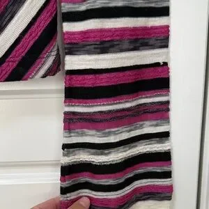 Add flair with this vibrant striped long sleeve top. Features bold pink, black, and gray stripes. Ideal for casual wear.