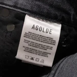 AGOLDE Pinch Waist Skinny Faded Black Stretch Denim Jeans Women's 26x28 Raw Hem
