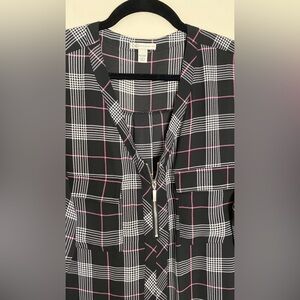 Stylish plaid blouse with long sleeves. Features a classic design with a comfortable fit.