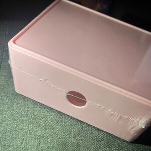 Organize your space with this charming pink storage box featuring a cheerful yellow handle. Perfect for keeping your items tidy and accessible.