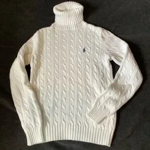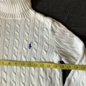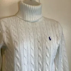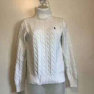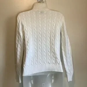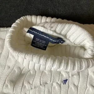 Ralph Lauren Sport CowlNeck Sweater Women Med. White Cable Knit Pullover Cotton