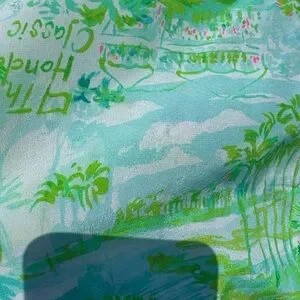 Hard to find Honda Gold Classic Lilly Pulitzer blouse with tropical patterns and golf tees!