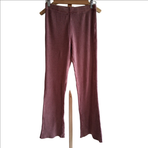Free People One Marlo Thermal Waffle Knit Flare Pants Sz.S Russet Acorn EUC