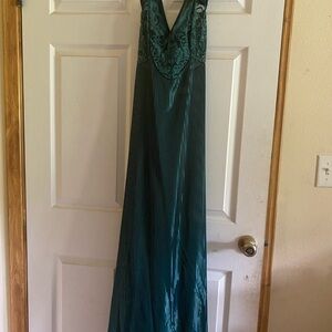 Vintage Petra Lingerie Nightgown Womens Size Large Maxi Green Lace Coquette.