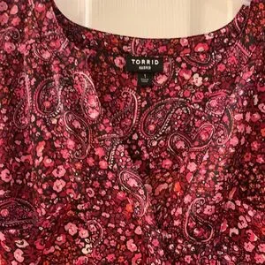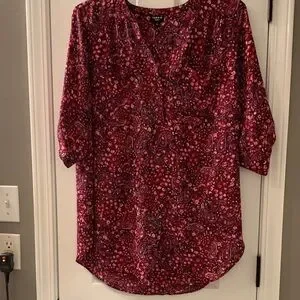 Elegant paisley pattern. Rich red hue. Three-quarter sleeves. Perfect for any occasion.