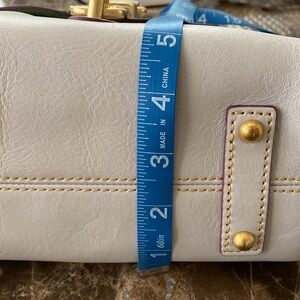 Beautiful NWT Florentine leather shoulder bag that converts to a crossbody. Leather and suede lined interior. This bag has been treated with Apple leather protector but has never been worn. Elevate your style with the Dooney & Bourke Cream Leather Crossbody Bag. This elegant accessory features a sleek design and a versatile cream color, perfect for any occasion.