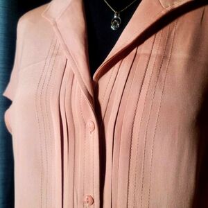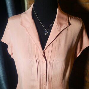 Jones New York Silk Blouse Warm Pink Cap Sleeve with Pintuck Accents - Size 14