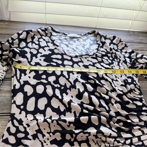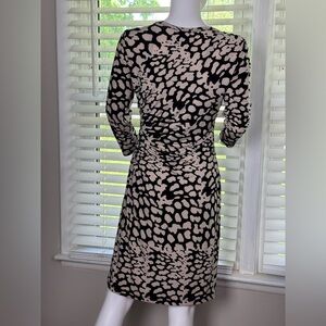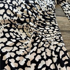 Chic long sleeve dress with a striking black and cream pattern. Ideal for elegant occasions. Pullover, lightweight, stretch, comfortable. Excellent preowned condition. Please review all photos and don’t hesitate to ask questions. Feel free to make an offer.